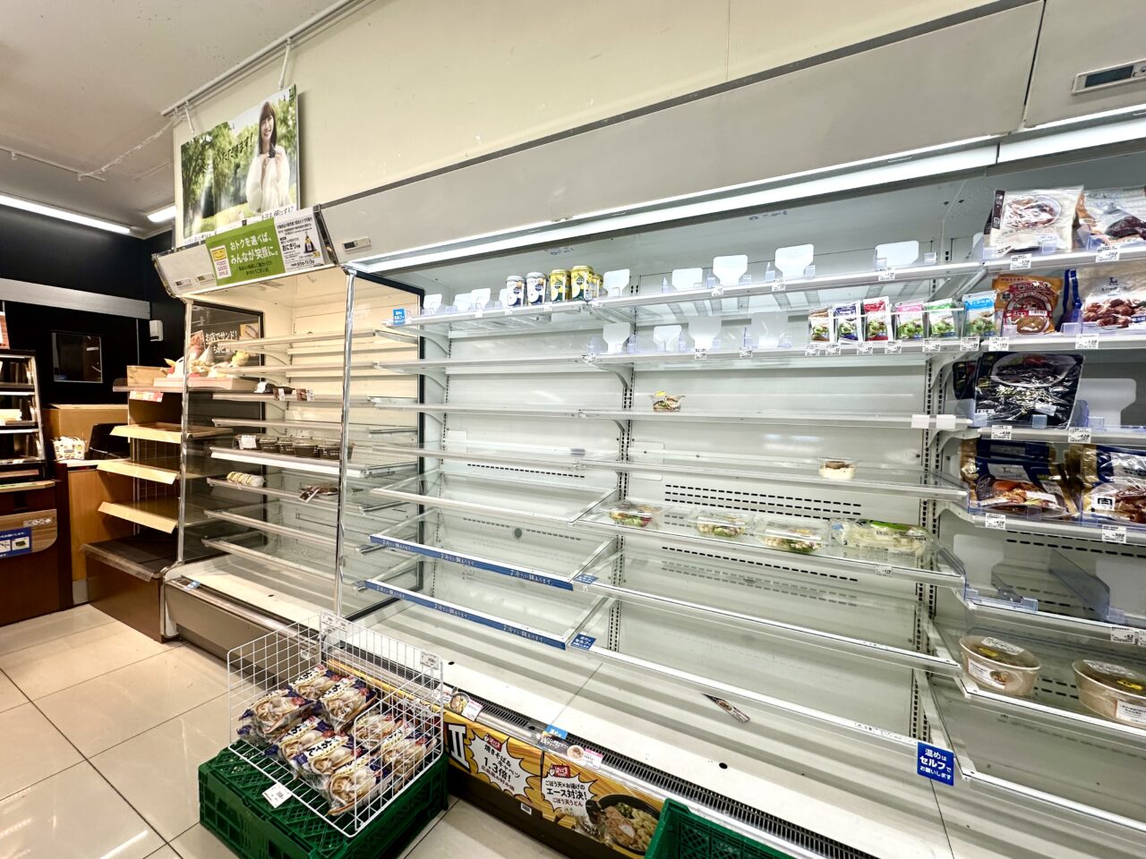 24時間営業するコンビニは、深夜にもいろいろなものを買えるのでとても便利ですよね。休業前に訪れた時は、お惣菜などはほとんどない状態でした。