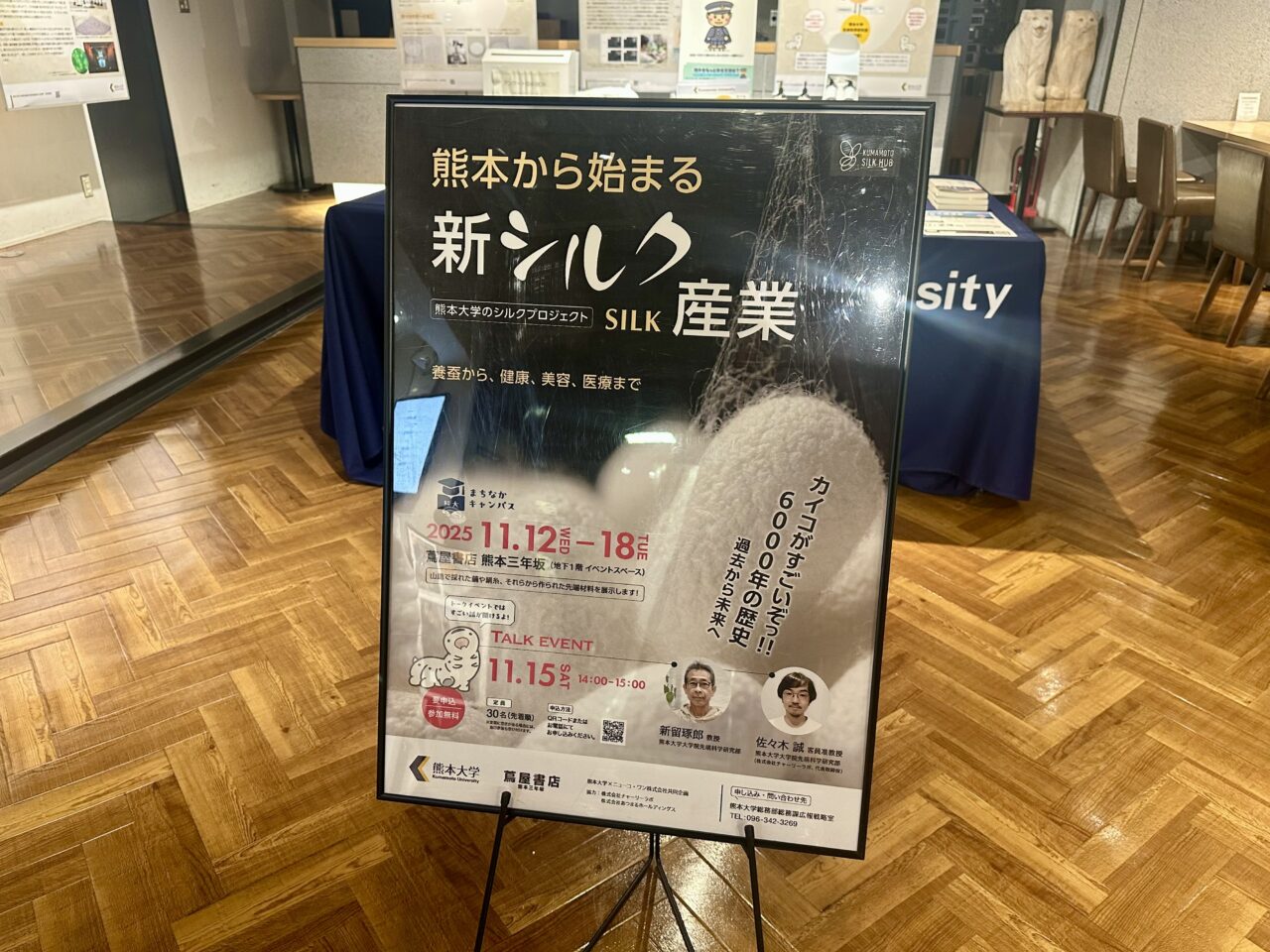 2025年11月12日(水) ~ 11月18日(火)まで、蔦屋書店熊本三年坂地下1階イベントスペースにて熊大まちなかキャンパス「熊本から始まる新シルク産業」が開催されています。