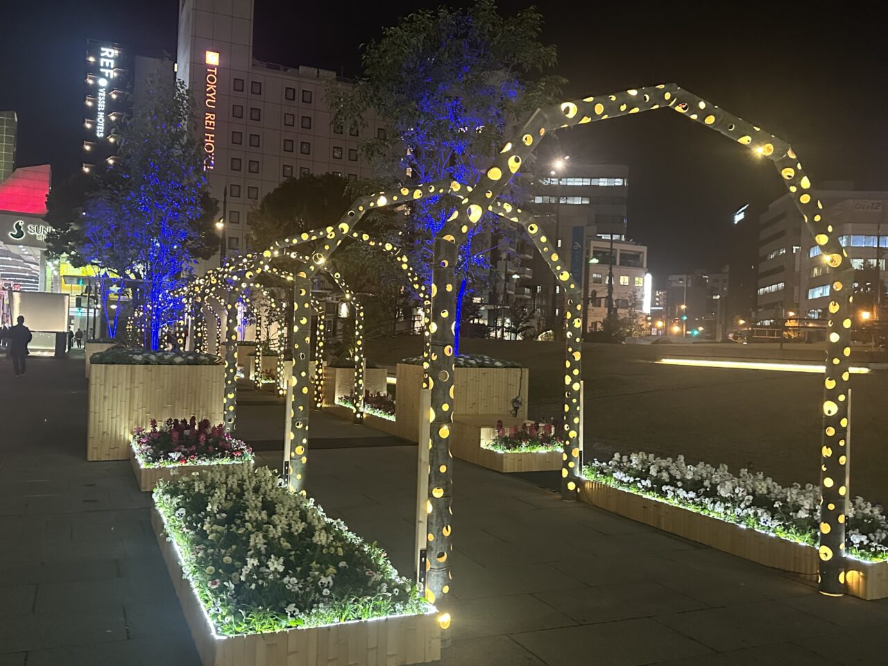 街なかエリアのサクラマチ前街なか広場(シンボルプロムナード)では、前回も好評だったという「花のトンネル」があり、準備段階から市民ボランティアや地域の方々と協力し、『市民協働』でイベントを作り上げたそうです。夜間はライトアップも楽しめるとのこと。