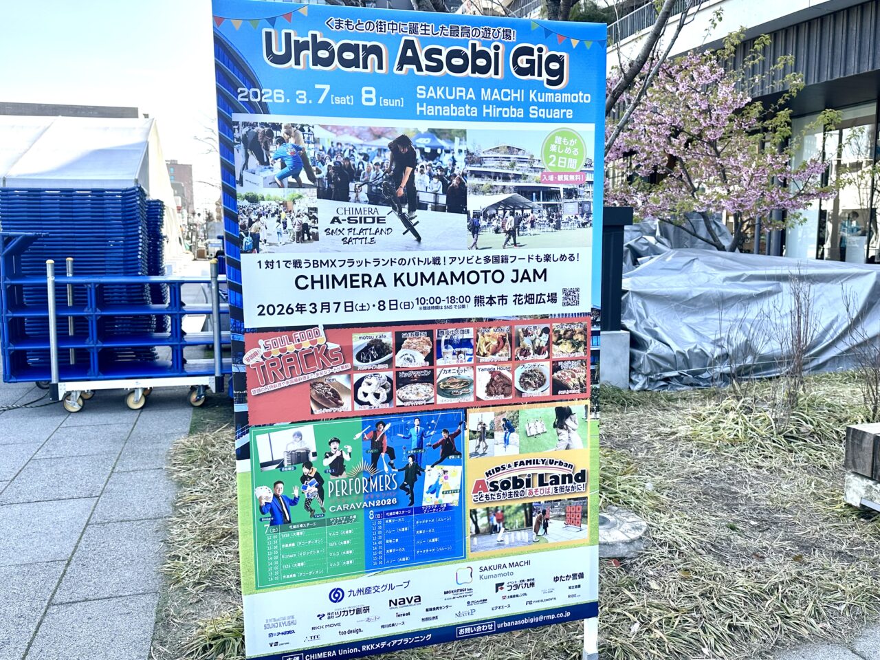 2026年3月7日(土)~3月8日(日)に、花畑広場にて「SAKURAMACHI Kumamoto Urban Asobi Gig at Hanabata Square Hiroba」が開催されます。ホームページによると、「くまもとの街中に誕生した最高の遊び場!1対1で戦うBMXフラットランドのバトル戦!アソビと多国籍フードも楽しめる!CHIMERA KUMAMOTO JAM」とのことです。入場料は無料なので、気軽に立ち寄ってみてはいかがでしょうか?