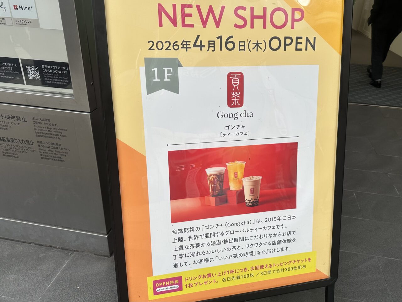 2026年4月16日(木) に、熊本市下通のCOCOSA1階に「ゴンチャCOCOSA熊本店」がオープンするようです!オープンする場所は、下通アーケードのエントランスからすぐ入ったところ。