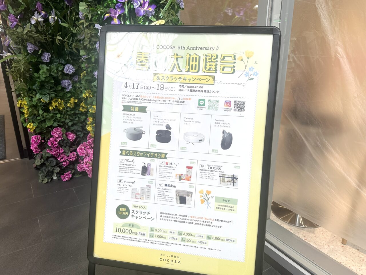 2026年4月17日(金)~19日(日)に、COCOSAにて「春の大抽選会&スクラッチキャンペーン」が開催されます。